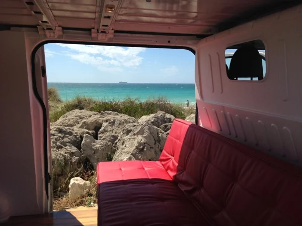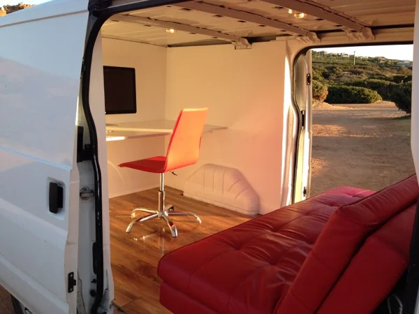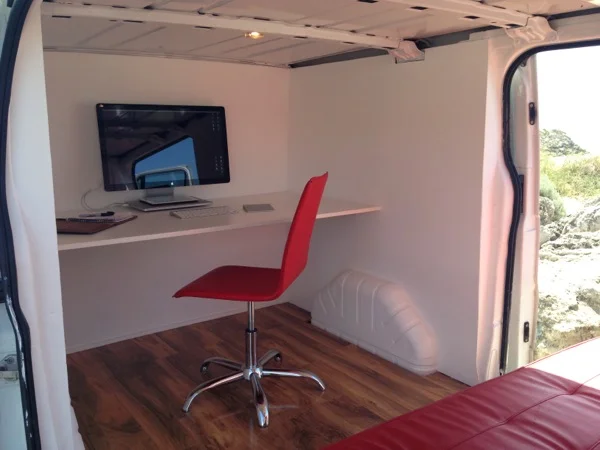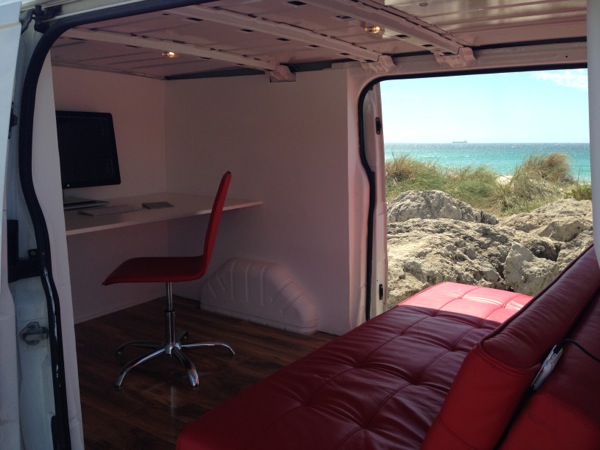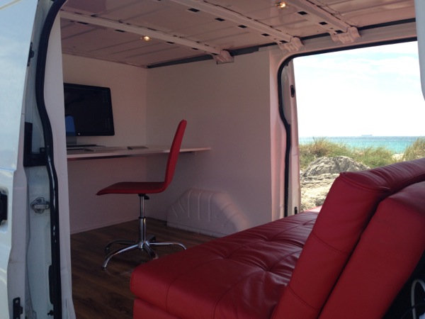 It has all the usual office things like Wi-Fi, AC power, and a desk for working. It also has a couch for thinking, and a view and fresh air. And it’s always near the ocean or a place for exploring.